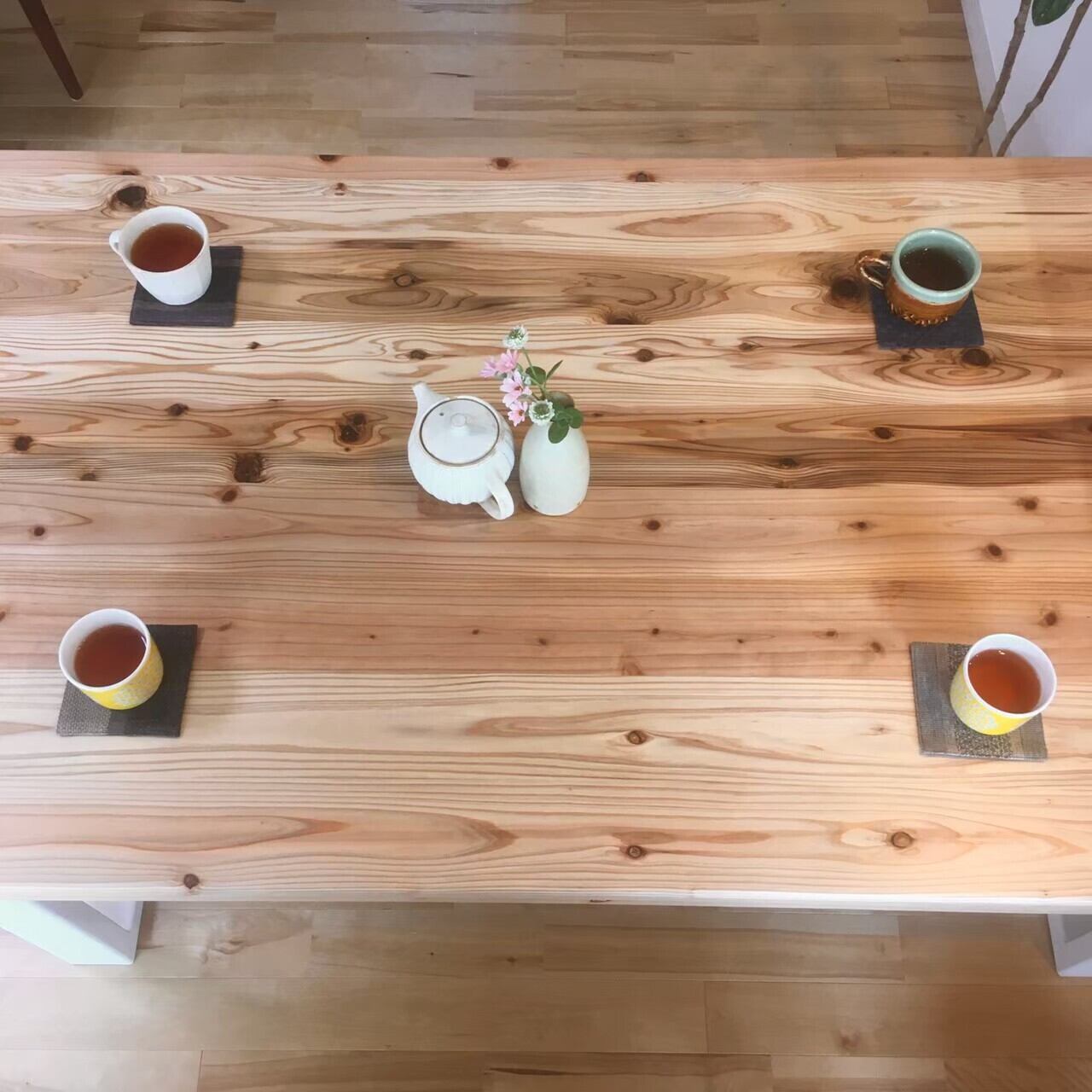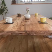 風合い豊かで温かみのある国産杉の無垢材を使用し、全ての角を丸く滑らかに仕上げたダイニングテーブル!~木製脚~