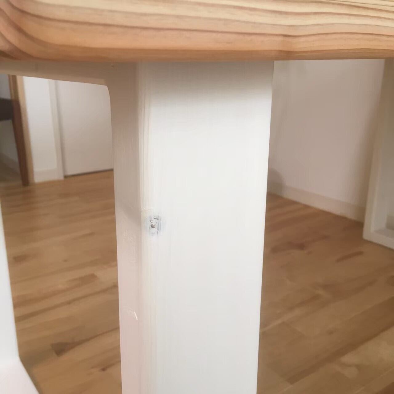 脚の角部分もしっかり面取り加工しておりますので、座っている時に足が当たっても柔らかいあたりにしております。