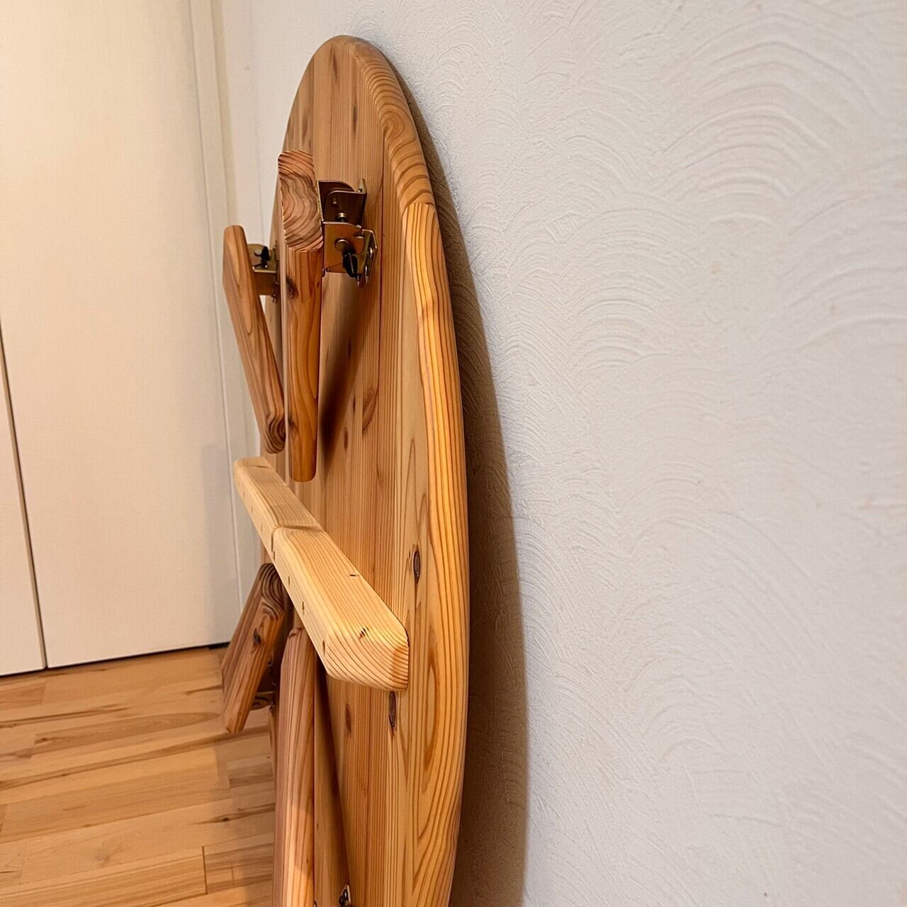 風合い豊かで温かみのある国産杉の無垢材を使用し、角を丸く滑らかに仕上げた折り畳みちゃぶ台~木製脚~